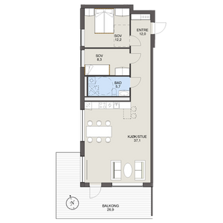 Boligene er sydvendt og har svært gode solforhold hele dagen. Nyt godværet på din private balkong.